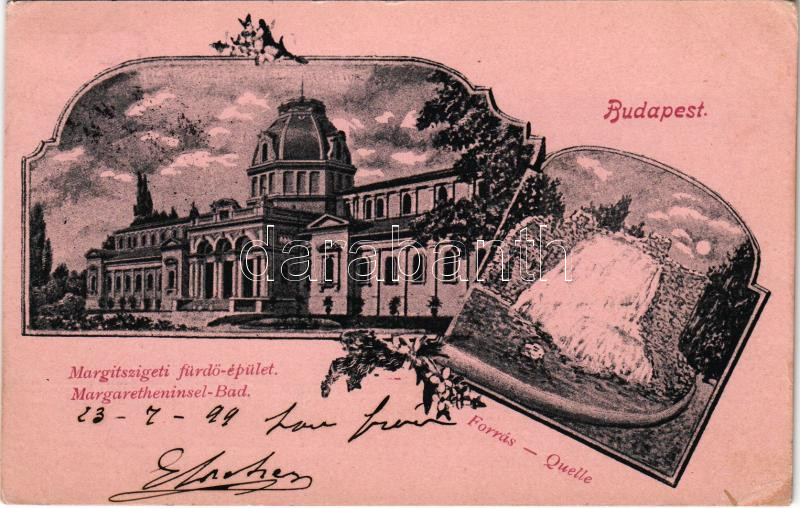 1899 (Vorläufer) Budapest XIII. Margitszigeti fürdő épület, forrás. Ar... https://www.darabanth.com/de/435-Fernauktion/435.0/Ansichtskarten/Ungarn~2500004/1899-Vorlaufer-Budapest-XIII-Margitszigeti-furdo-epulet-forras-Art-Nouveau-floral-EK~II2815394