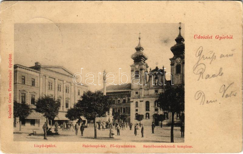 1899 (Vorläufer) Győr, Széchenyi tér, Lloyd épület, Főgimnázium, Szent... https://www.darabanth.com/de/435-Fernauktion/435.0/Ansichtskarten/Ungarn~2500004/1899-Vorlaufer-Gyor-Szechenyi-ter-Lloyd-epulet-Fogimnazium-Szentbenedek-rendi-templom~II2815294