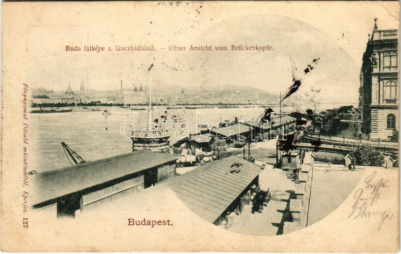 1900 Budapest I. Buda látképe a Lánchídfőtől. Fénynyomat Divald műinté... https://www.darabanth.com/de/435-Fernauktion/435.0/Ansichtskarten/Ungarn~2500004/1900-Budapest-I-Buda-latkepe-a-Lanchidfotol-Fenynyomat-Divald-muintezetebol-127-EK~II2814574