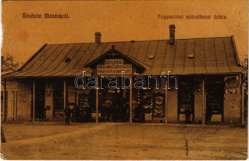 1910 Mándok, Fogyasztási szövetkezet üzlete és saját kiadása (EK) https://www.darabanth.com/de/435-Fernauktion/435.0/Ansichtskarten/Ungarn~2500004/1910-Mandok-Fogyasztasi-szovetkezet-uzlete-es-sajat-kiadasa-EK~II2813858