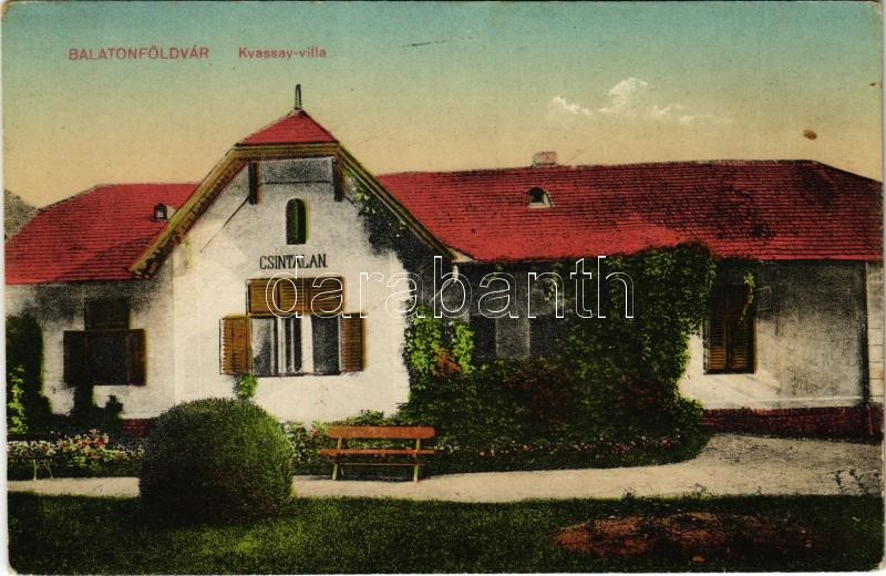 Balatonföldvár, Kvassay (Csintalan) villa. Vasúti levelezőlapárusítás ... https://www.darabanth.com/de/435-Fernauktion/435.0/Ansichtskarten/Ungarn~2500004/Balatonfoldvar-Kvassay-Csintalan-villa-Vasuti-levelezolaparusitas-2814~II2628157