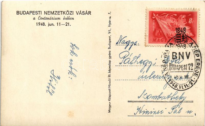 Beschreibung: Budapest, BNV Budapesti Nemzetközi Vásár a Centenárium évében 1948 + So. Stpl.