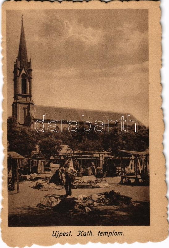 Budapest IV. Újpest, Katolikus templom, ócska piac https://www.darabanth.com/de/435-Fernauktion/435.0/Ansichtskarten/Ungarn~2500004/Budapest-IV-Ujpest-Katolikus-templom-ocska-piac~II2529454