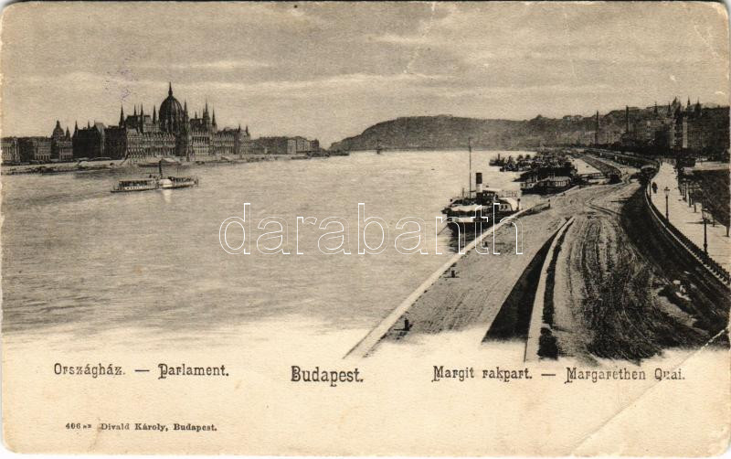 Beschreibung: Budapest Margit (Bem) rakpart, Országház. Divald Károly 406. (EB)