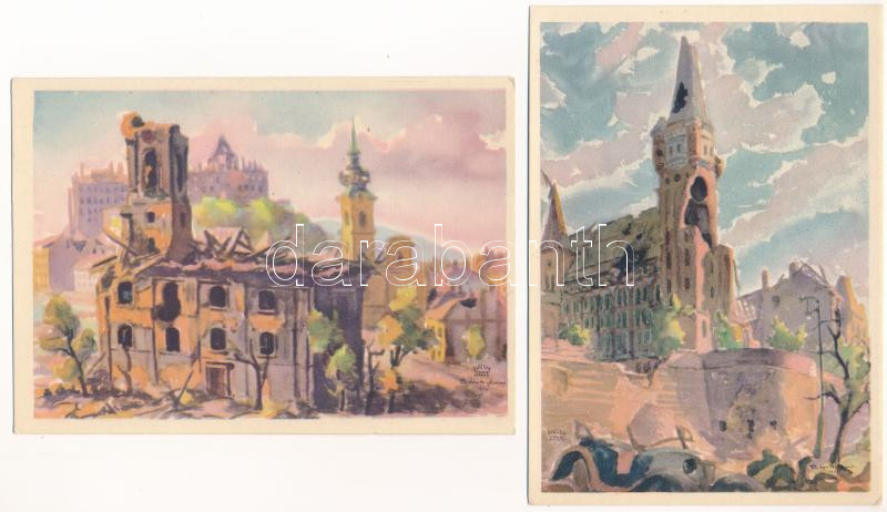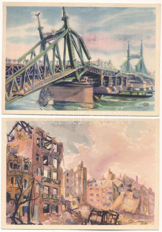 Beschreibung: Budapest, Második világháború utáni romok. Piatnik Nándor és fiai kiadása s: Blaski János - 11 db képeslap