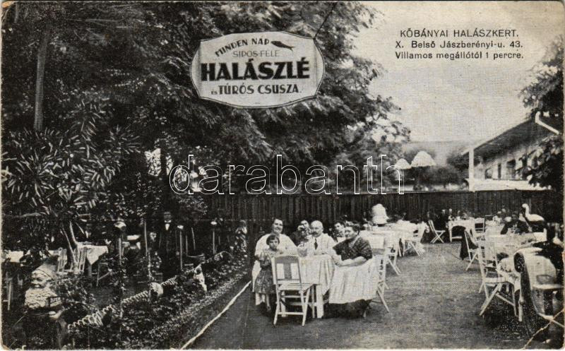 Beschreibung: Budapest X. Sipos-féle Kőbányai Halászlékert. Belső Jászberényi út 43. (ma Kőrösi Csoma Sándor út) (EK)