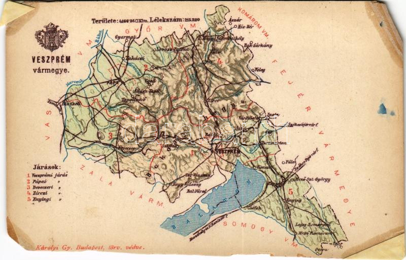 Veszprém vármegye térképe. Kiadja Károlyi Gy. / Map of Veszprém county... https://www.darabanth.com/de/435-Fernauktion/435.0/Ansichtskarten/Ungarn~2500004/Veszprem-varmegye-terkepe-Kiadja-Karolyi-Gy-Map-of-Veszprem-county-b~II2783308