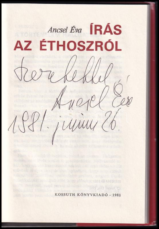 Ancsel Éva: Írás az éthoszról. DEDIKÁLT! Bp., 1981., Kossuth. Kiadói k... https://www.darabanth.com/de/435-Fernauktion/435.0/Bucher/Bucher-Andere-kuriositaten~2000022/Ancsel-Eva-Iras-az-ethoszrol-DEDIKALT-Bp-1981-Kossuth-Kiadoi-kartonalt-papirkotes~II2820888