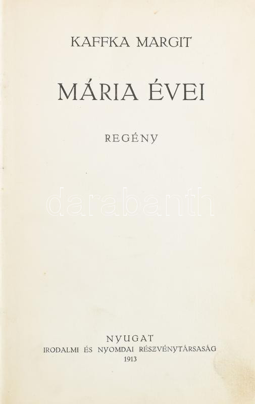 Kaffka Margit: Mária évei. Regény. Bp.,1913. Nyugat. 207 p. Első kiadá... https://www.darabanth.com/de/435-Fernauktion/435.0/Bucher/Bucher-Andere-kuriositaten~2000022/Kaffka-Margit-Maria-evei-Regeny-Bp-1913-Nyugat-207-p-Elso-kiadas-Korabeli-szecesszios-~II2816720
