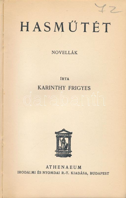 Karinthy Frigyes: Hasműtét. Bp.,[1933], Athenaeum, 185+1 p.Első kiadás... https://www.darabanth.com/de/435-Fernauktion/435.0/Bucher/Bucher-Andere-kuriositaten~2000022/Karinthy-Frigyes-Hasmutet-Bp-1933-Athenaeum-185plus1-pElso-kiadas-Korabeli-felvaszon-kC3~II2822428