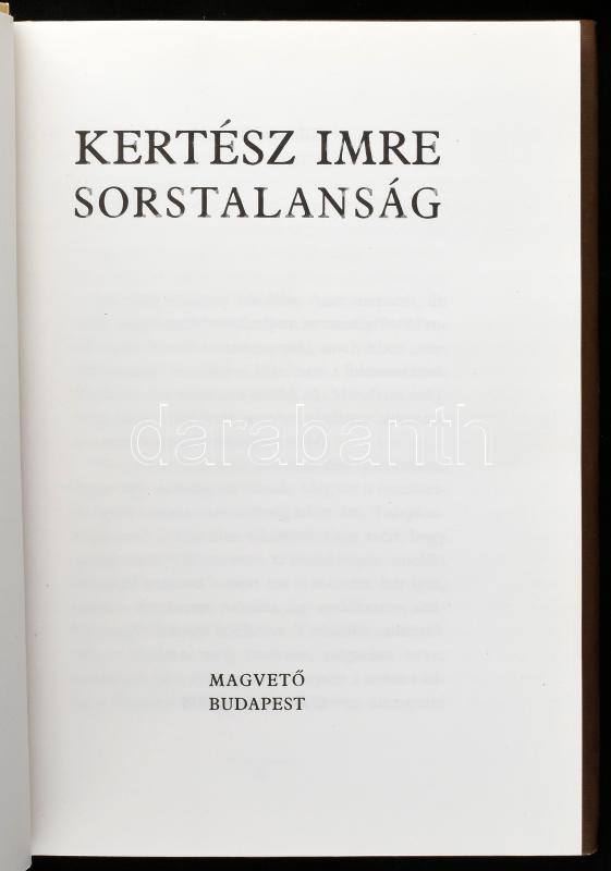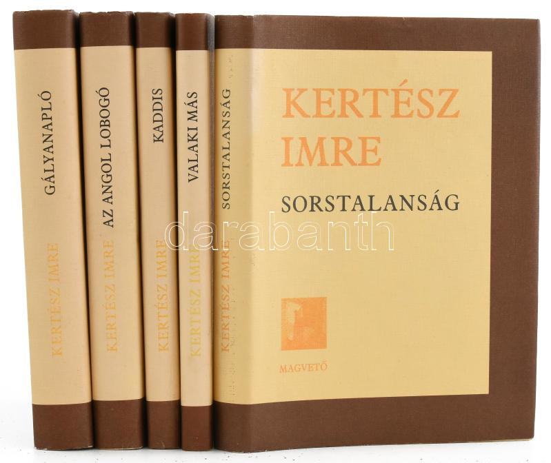 Kertész Imre: Sostalanság, Valaki más, Kaddis a meg nem született gyermekért, Az angol lobogó, Gályanapló. Bp., Magvető. Kiadói kartonált papírkötésben, kiadói papír védőborítókban, jó állapotban.