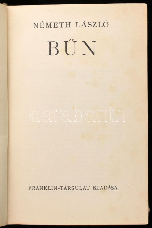 Németh László: Bűn. Bp.,[1937],Franklin. Kiadói kissé kopott aranyozot... https://www.darabanth.com/de/435-Fernauktion/435.0/Bucher/Bucher-Andere-kuriositaten~2000022/Nemeth-Laszlo-Bun-Bp-1937-Franklin-Kiadoi-kisse-kopott-aranyozott-gerincu-felvaszon-k~II2822803