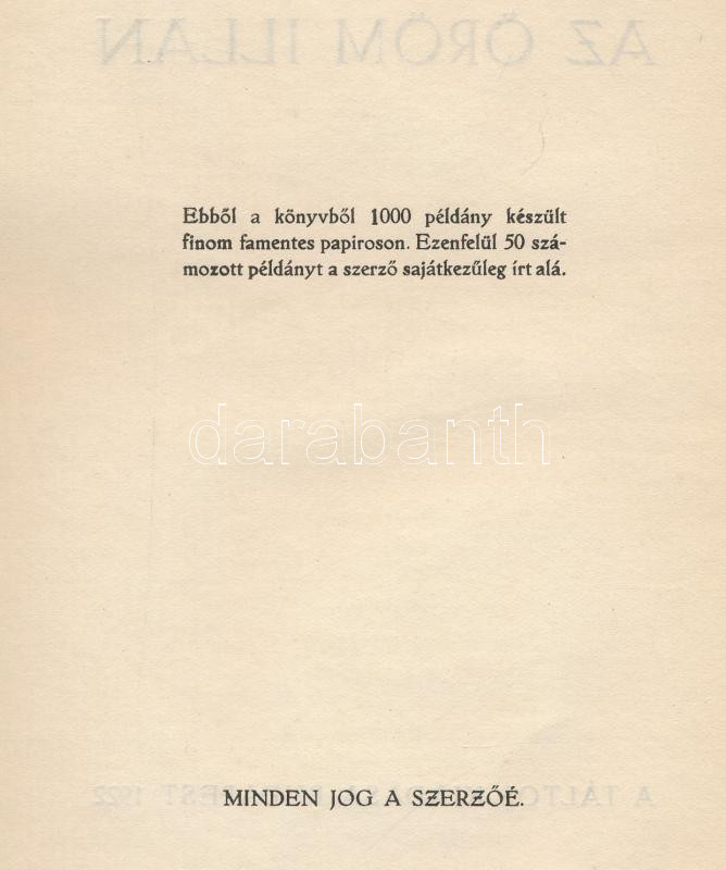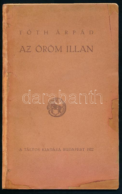 Tóth Árpád: Az öröm illan. Bp., 1922. Táltos,(Élet-ny.), 78 +1 p. Első kiadás. Kiadói papírkötés, restaurált borítóval, belül jó állapotban. Megjelent 1000 példányban. Számozatlan példány.