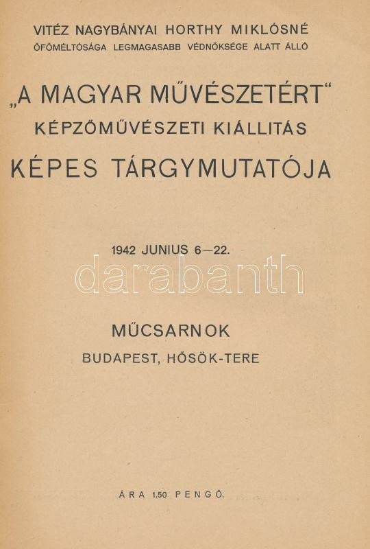 "A magyar művészetért" képzőművészeti kiállítás képes tárgym... https://www.darabanth.com/de/435-Fernauktion/435.0/Bucher/Bucher-Architektur-Kunst~2000010/A-magyar-muveszetert-kepzomuveszeti-kiallitas-kepes-targymutatoja-1942-Kiadoi-papC3~II2813808