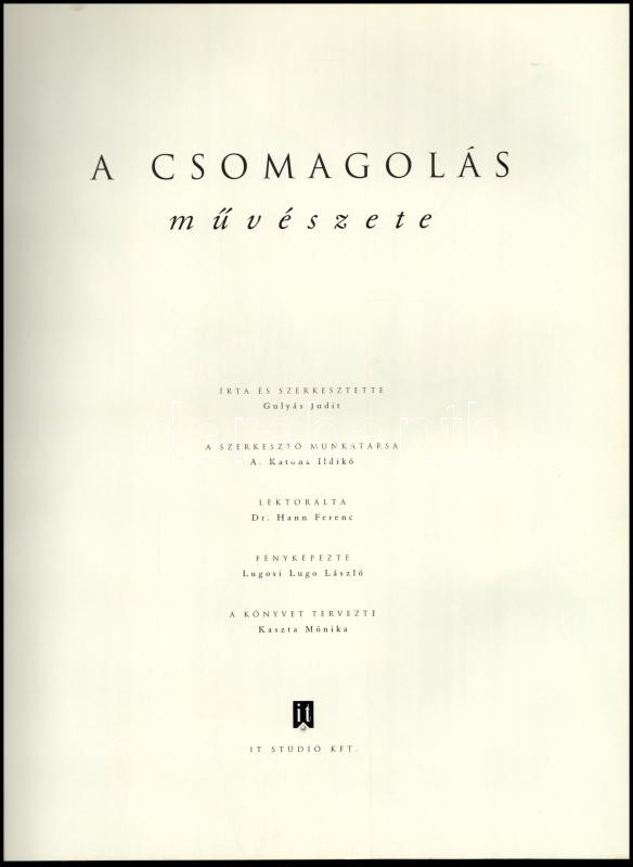 Gulyás Judit: A csomagolás művészete. Lugosi Lugo László fotóival. Sze... https://www.darabanth.com/de/435-Fernauktion/435.0/Bucher/Bucher-Architektur-Kunst~2000010/Gulyas-Judit-A-csomagolas-muveszete-Lugosi-Lugo-Laszlo-fotoival-Szeged-1997-IT-Studio~II2772214