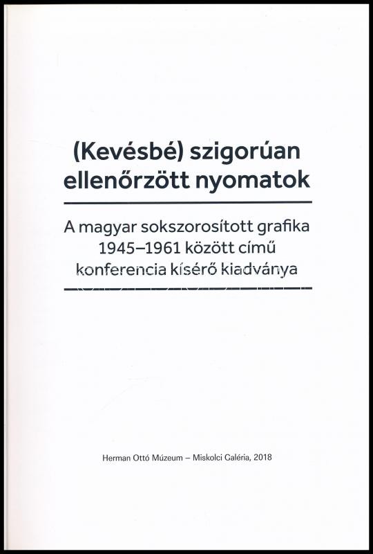 (Kevésbé) szigorúan ellenőrzött nyomatok. A magyar sokszorosított grafika 1945-1961 között c. konferencia kísérő kiadványa. Miskolc, 2018., Herman Ottó Múzeum - Miskolci Galéria. Kiadói papírkötés. Megjelent 200 példányban.