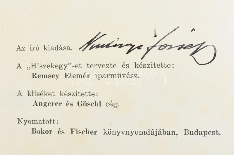 Kulinyi József: A budapesti szobafestők-, mázolók-, fényezők-, cég-, és címfestők-, aranyozók ipartestületének ötven éve (1886-1936). A szerző és az ipartestület elnöke által ALÁÍRT példány. Bp., 1936. Szerzői, 371 p. Benne Irredenta Hiszekegy ima. Javított kiadói papírborítóval