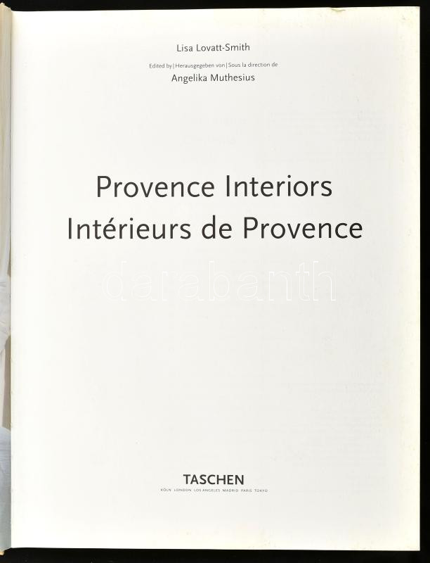 Lisa Lovatt-Smith: Provence Interiors. / Intérieurs de Provence. Köln,... https://www.darabanth.com/de/435-Fernauktion/435.0/Bucher/Bucher-Architektur-Kunst~2000010/Lisa-Lovatt-Smith-Provence-Interiors-Interieurs-de-Provence-Koln-1996-Taschen-Rendkivul-~II2821972