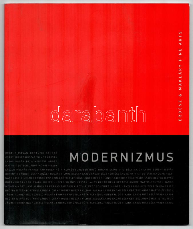Modernizmus. 1900-1935. Bp., 2006.,Erdész & Makláry Fine Arts Gallery. Gazdag képanyaggal, Bortnyik Sándor, Csáky József, Kassák Lajos, Kádár Béla, Mattis Teutsch János, Moholy-Nagy László, Scheiber Hugó, Vajda Lajos, Uitz Béla és mások munkáival illusztrált. Kiadói papírkötés.