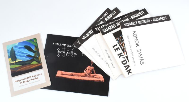Vasarely Múzeum kiállítási katalógusai, 5 db: Magda Frank, Konok Tamás, Halász-Szabó Sándor, Katalin Hetey, Le K'Dar. Joseph Kadar Art electro - images (1982-1992.) Bp., 1991-1992., Vasarely Múzeum. A művészek munkáival illusztráltak. Kiadói papírkötések.; + Nagyváradtól Párizson át Nagyváradig. Válogatás Hajdú László gyűjteményéből. Balmazújváros, 2020., Semey Andor Múzeum. Kiadói papírkötés.; + Schaár Erzsébet: Ágyjelentek. Összeáll.: Kertész Csaba. Bp., én., Home Galéria. A művész munkáival illusztrált. Kiadói papírkötés.
