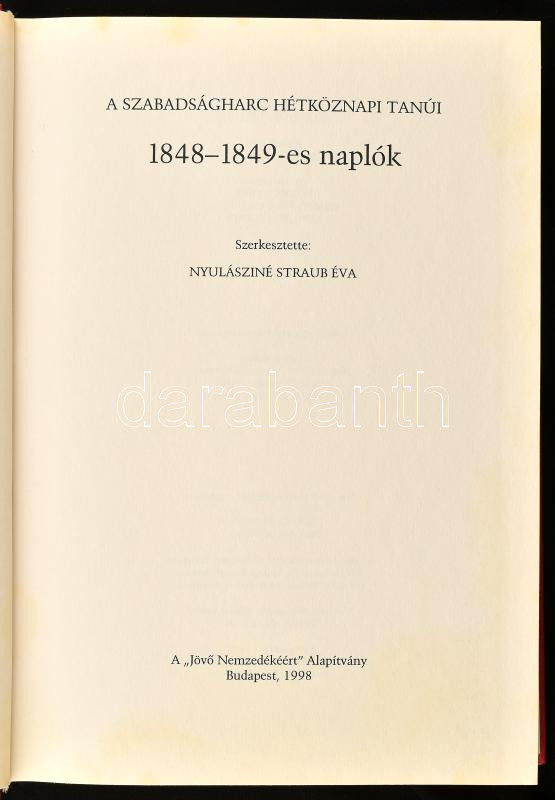 A szabadságharc hétköznapi tanúi. 1848-1849-es naplók. Szerk.: Nyulásziné Straub Éva. Magyar Sorsfordulók. Bp., 1998, A Jövő Nemzedékéért Alapítvány. Kiadói műbőr-kötés.