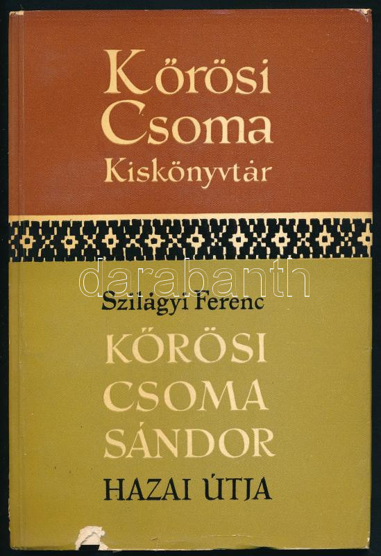 Szilágyi Ferenc: Kőrösi Csoma Sándor hazai útja. Kőrösi Csoma Kiskönyvtár 1. Bp., 1966, Akadémiai Kiadó, 93 p + 7 t. Első kiadás. Kiadói papírkötés, az elülső borítón kis hiánnyal. Megjelent 1000 példányban.