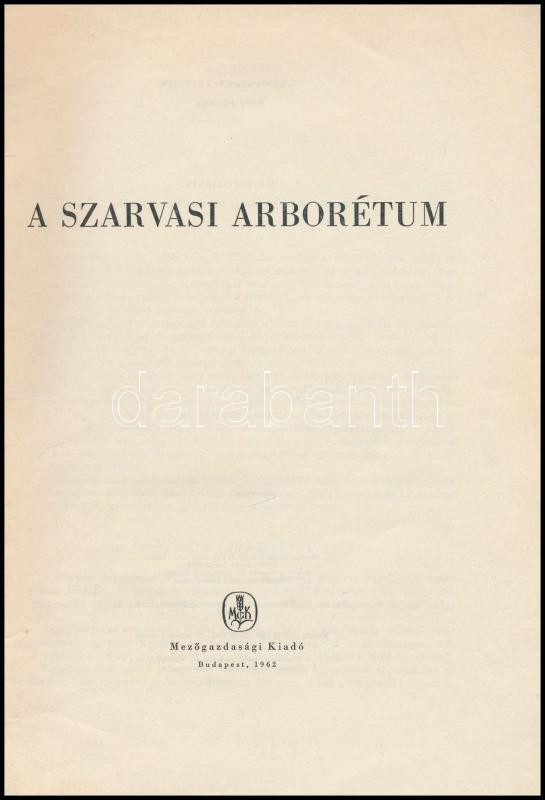 A szarvasi arborétum. Bp., 1962., Mezőgazdasági. Kiadói kissé foltos papírkötés, a gerincen szakadással, bejegyzéssel.