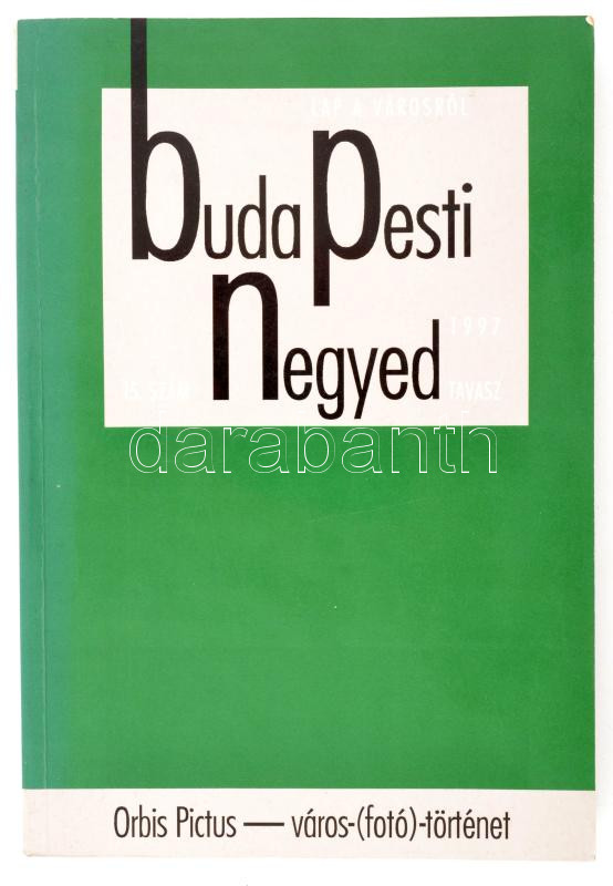 Budapesti Negyed 15. sz. (V. évf. 1. sz.) 1997. tavasz. Orbis Pictus - város-(fotó)-történet. Szerk.: Kincses Károly. Bp., 1997, Budapest Főváros Levéltára, 269+(3) p. Fekete-fehér fotókkal illusztrált. Kiadói papírkötés.