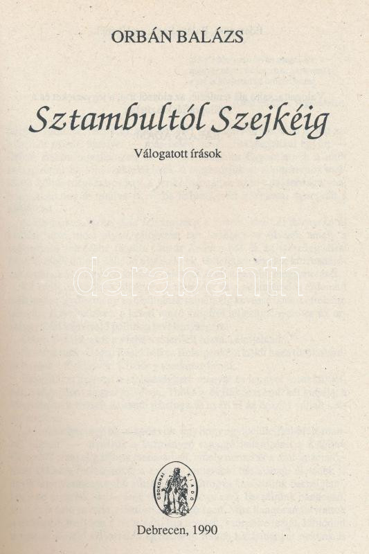Orbán Balázs: Sztambultól Szejkéig. Válogatott írások. Szerk.: Balázs ... https://www.darabanth.com/de/435-Fernauktion/435.0/Bucher/Bucher-Reise-und-Ortgeschichte~2000005/Orban-Balazs-Sztambultol-Szejkeig-Valogatott-irasok-Szerk-Balazs-Adam-Debrecen-1990~II2814714