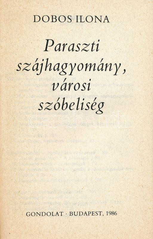 Dobos Ilona: Paraszti szájhagyomány, városi szóbeliség. Bp., 1986., Go... https://www.darabanth.com/de/435-Fernauktion/435.0/Bucher/Bucher-Sozialwissenschaften~2000014/Dobos-Ilona-Paraszti-szajhagyomany-varosi-szobeliseg-Bp-1986-Gondolat-Kiadoi-kartonal~II2814724
