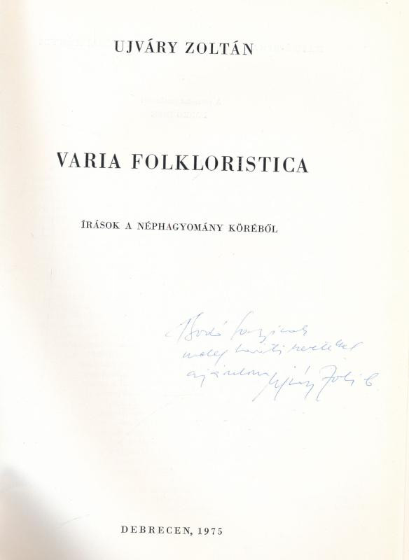 Ujváry Zoltán: Varia folkloristica. Írások a néphagyomány köréből. DED... https://www.darabanth.com/de/435-Fernauktion/435.0/Bucher/Bucher-Sozialwissenschaften~2000014/Ujvary-Zoltan-Varia-folkloristica-Irasok-a-nephagyomany-korebol-DEDIKALT-Hajdu-Bihar-~II2811723