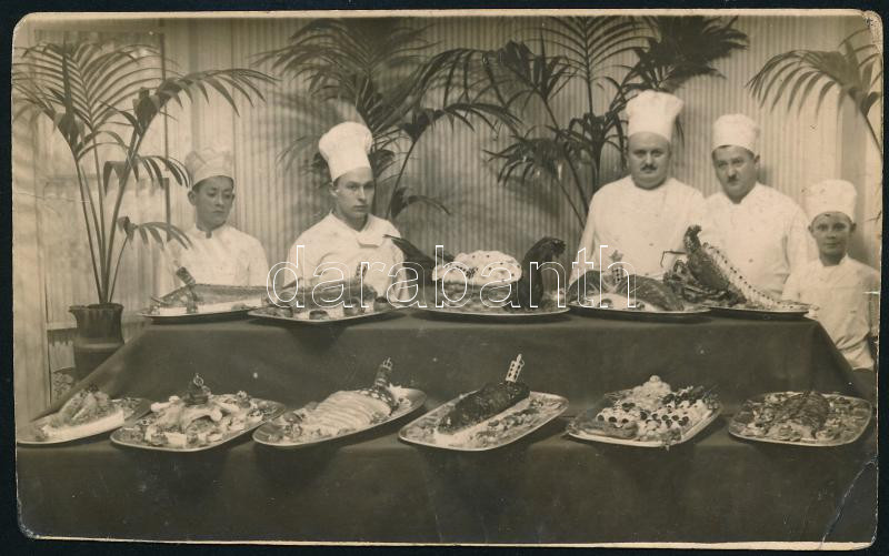 1929 Bp., Gellért Szálló szakácskiállítása, hátoldalon feliratozott fo... https://www.darabanth.com/de/435-Fernauktion/435.0/Fotografie/Foto~500022/1929-Bp-Gellert-Szallo-szakacskiallitasa-hatoldalon-feliratozott-foto-8C39713-5-cm~II2817887