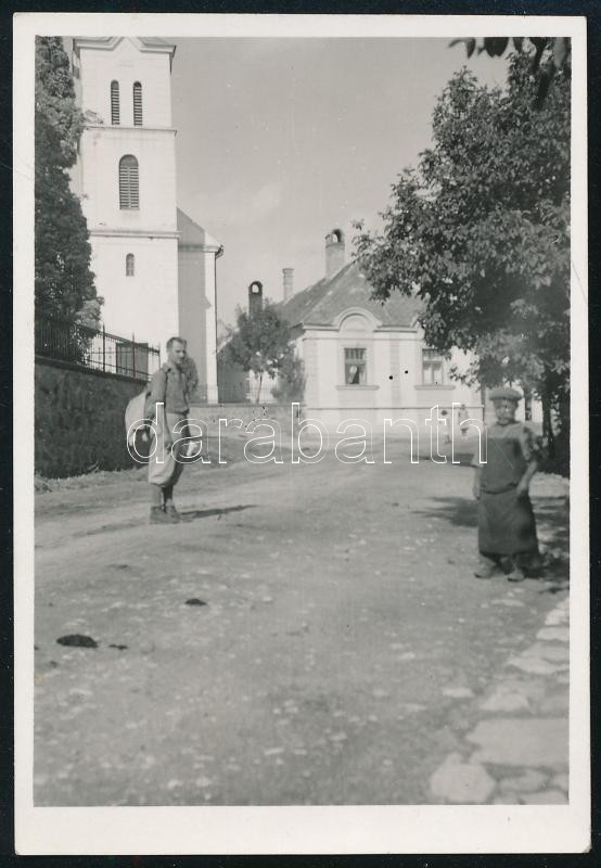Beschreibung: 1935 A Balatonfüred-Csopaki Borvidéken lévő Lovas községbeli részlet egy helyi mesteremberrel, hátoldalt felirattal, szép állapotban, 8×5,5 cm