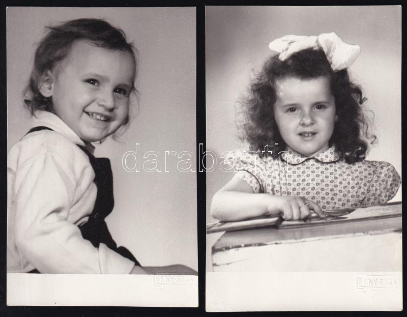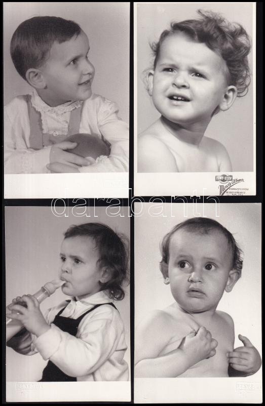 Beschreibung: 24 db gyermekfotó, Fényszöv és Mosolyalbuma jelzésekkel, 13×9 cm