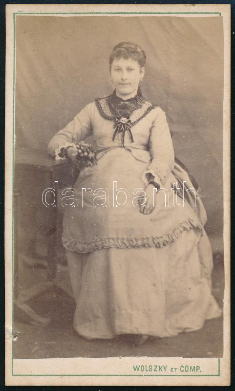cca 1870-1880 Elegáns hölgy portréja, keményhátú fotó Wolszky galántai... https://www.darabanth.com/de/435-Fernauktion/435.0/Fotografie/Foto~500022/cca-1870-1880-Elegans-holgy-portreja-kemenyhatu-foto-Wolszky-galantai-mutermebol-10-5C397~II2819721