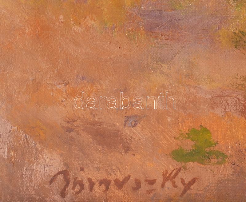Bánovszky Miklós (1895-1995): Kirándulók a Balatonparton. Olaj, vászon, jelezve balra lent. Dekoratív, üvegezett fakeretben, 60×80 cm / Miklós Bánovszky (1895-1995): Tourists at Lake Balaton. Oil on canvas, signed lower left, framed, 60×80 cm
