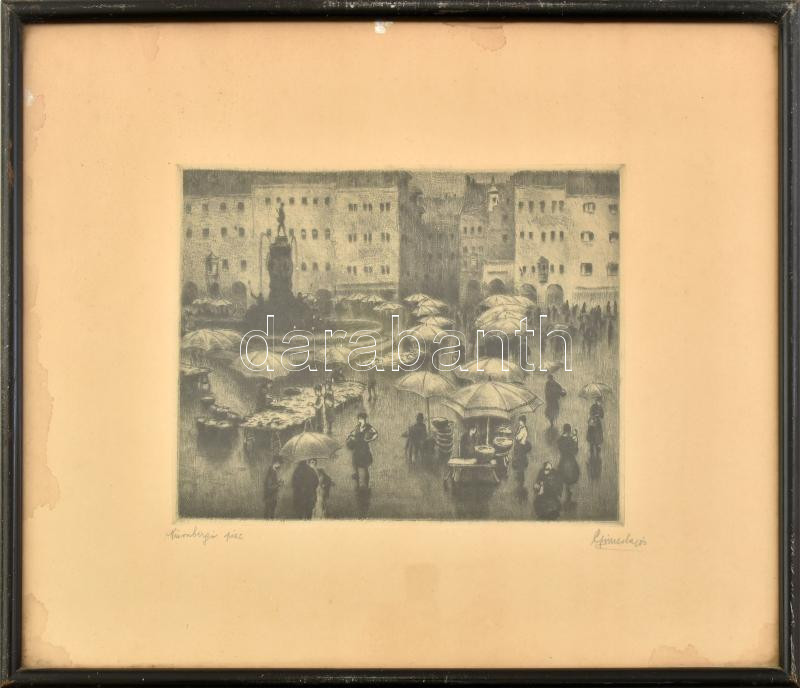 Gimes Lajos (1886-1945): Nürnbergi piac. Rézkarc, papír, jelzett, lap ... https://www.darabanth.com/de/435-Fernauktion/435.0/Gemalde-und-Grafiken/Gemalde-und-Grafiken~500001/Gimes-Lajos-1886-1945-Nurnbergi-piac-Rezkarc-papir-jelzett-lap-szele-foltos-uvegezett-f~II2821520