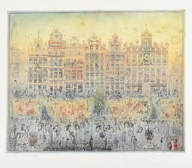 Beschreibung: Gross Arnold: Brüsszeli vasárnap. Nyomat, papír. jelzett 33x40 cm alján képet nem érintő folttal