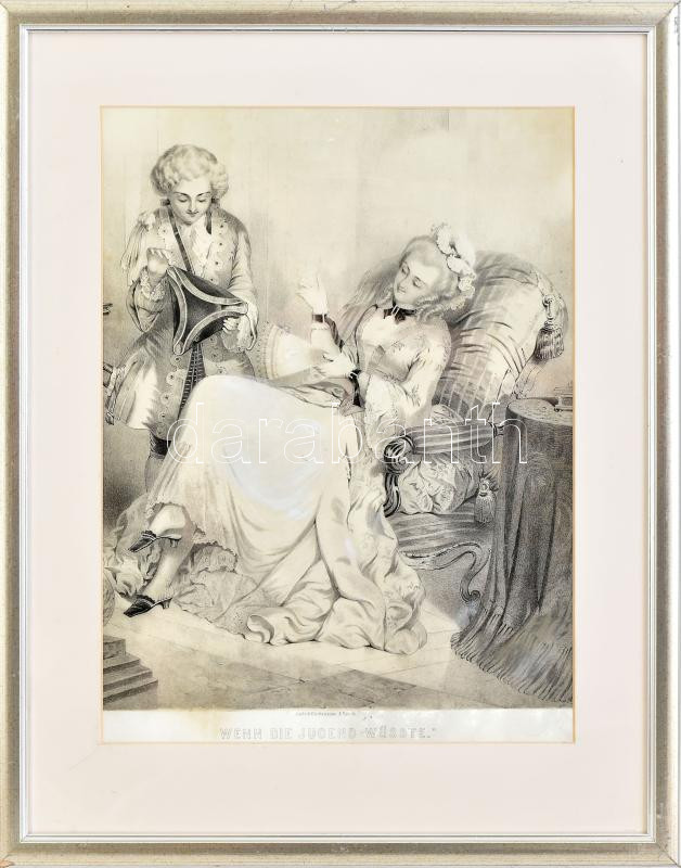 Ha a fiatalság tudná ("Wenn die Jugend wüsste."), XIX. sz. közepe. Litográfia, papír, jelzés nélkül, Reiffenstein & Rösch nyomása, lap alja kissé foltos és kissé sérült. Dekoratív, üvegezett fakeretben, 36,5×28,5 cm