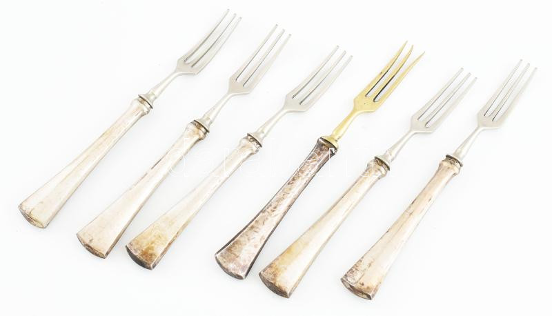 Beschreibung: 6 db Ezüst (Ag) nyelű villa, jelzett, kopott, h: 16 cm