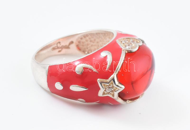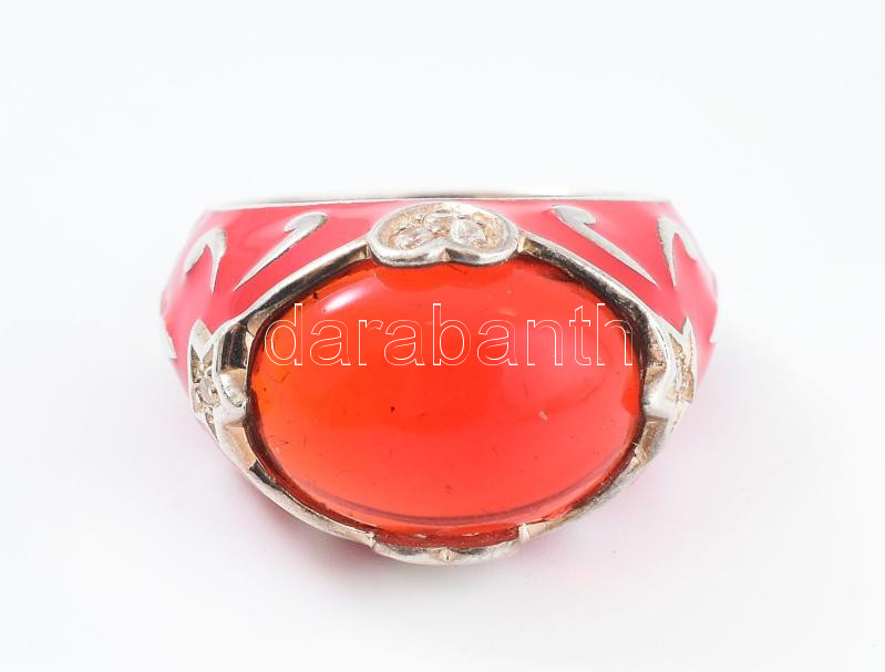 Beschreibung: Ezüst (Ag) gyűrű piros zománccal és kővel. Jelzett, bruttó: 9,6 g, m: 56,5