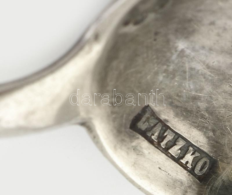 Ezüst(Ag) monogramos mokkás kanál, jelzett, h: 10,5 cm, nettó: 64 g https://www.darabanth.com/de/435-Fernauktion/435.0/Juwellen-und-Kunstobjekte-aus-Edelmetall/Juwellen-und-Kunstobjekte-aus-Edelmetall~500031/EzustAg-monogramos-mokkas-kanal-jelzett-h-10-5-cm-netto-64-g~II2822580