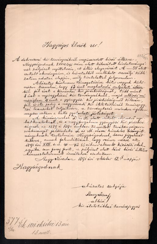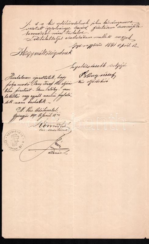 1891 Nagyvárad, Gyöngyös, Dr. Bary József (1858-1915) albÃró/királyi e... https://www.darabanth.com/de/435-Fernauktion/435.0/Kunst-Dokumente-andere-Sammelgebiete/Dokument~500019/1891-Nagyvarad-Gyongyos-Dr-Bary-Jozsef-1858-1915-albirokiralyi-eljarasbiro-a-tisza~II2822061