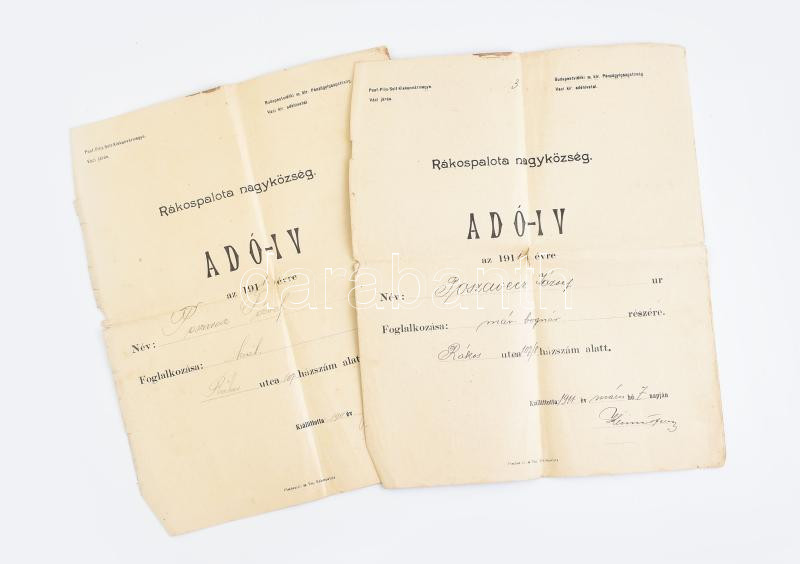 1911 Rákospalota nagyközség 2 db adóív MÁV bognárnak, bejegyzésekkel. ... https://www.darabanth.com/de/435-Fernauktion/435.0/Kunst-Dokumente-andere-Sammelgebiete/Dokument~500019/1911-Rakospalota-nagykozseg-2-db-adoiv-MAV-bognarnak-bejegyzesekkel-szakadasokkal~II2813640