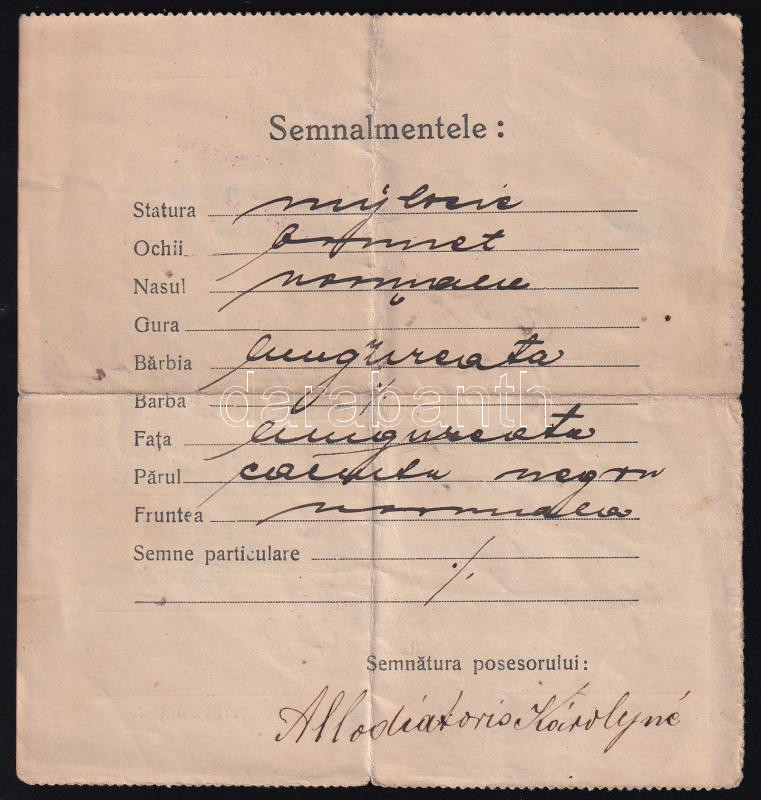 Beschreibung: 1920 Aradi azonosítási igazolvány