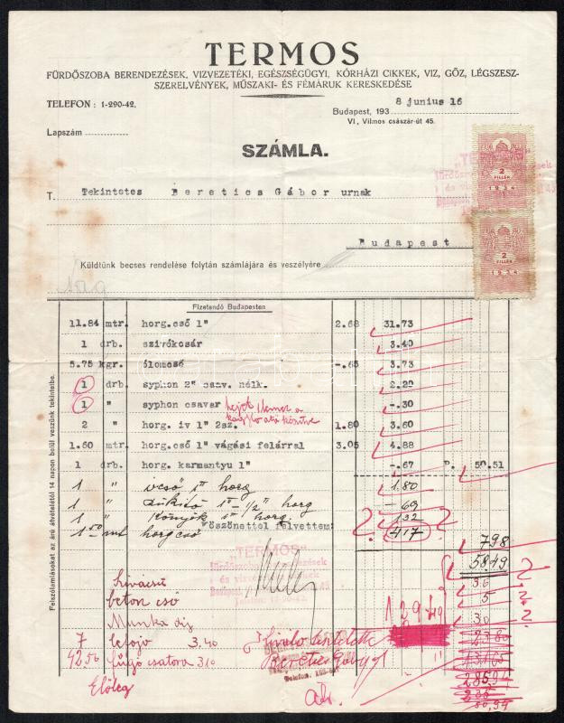 1938 Bp., Termos fürdőszoba berendezések, vízvezetéki és egyéb áruk ke... https://www.darabanth.com/de/435-Fernauktion/435.0/Kunst-Dokumente-andere-Sammelgebiete/Dokument~500019/1938-Bp-Termos-furdoszoba-berendezesek-vizvezeteki-es-egyeb-aruk-kereskedese-fejleces-s~II2818407