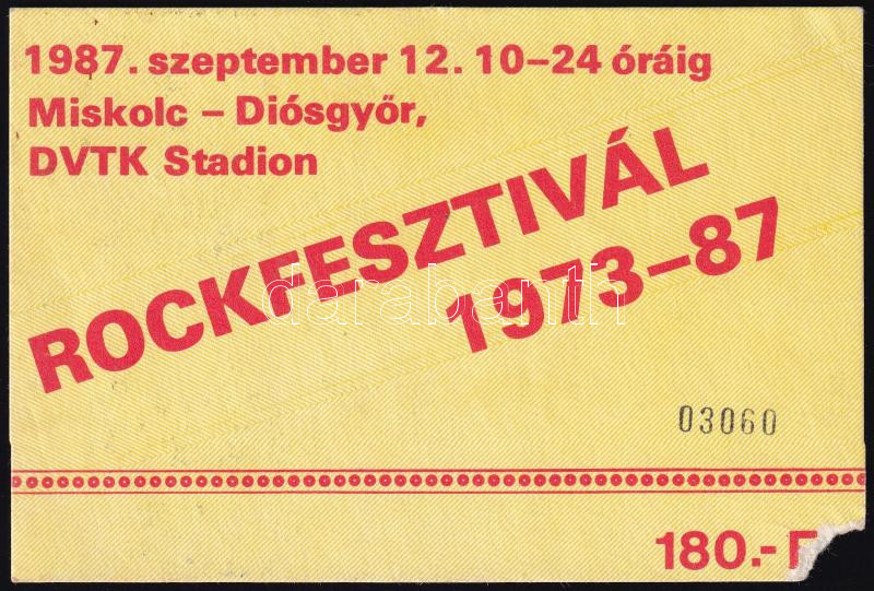 1987 Rockfesztivál koncert belépőjegy, Miskolc-Diósgyőr, DVTK Stadion https://www.darabanth.com/de/435-Fernauktion/435.0/Kunst-Dokumente-andere-Sammelgebiete/Dokument~500019/1987-Rockfesztival-koncert-belepojegy-Miskolc-Diosgyor-DVTK-Stadion~II2821496