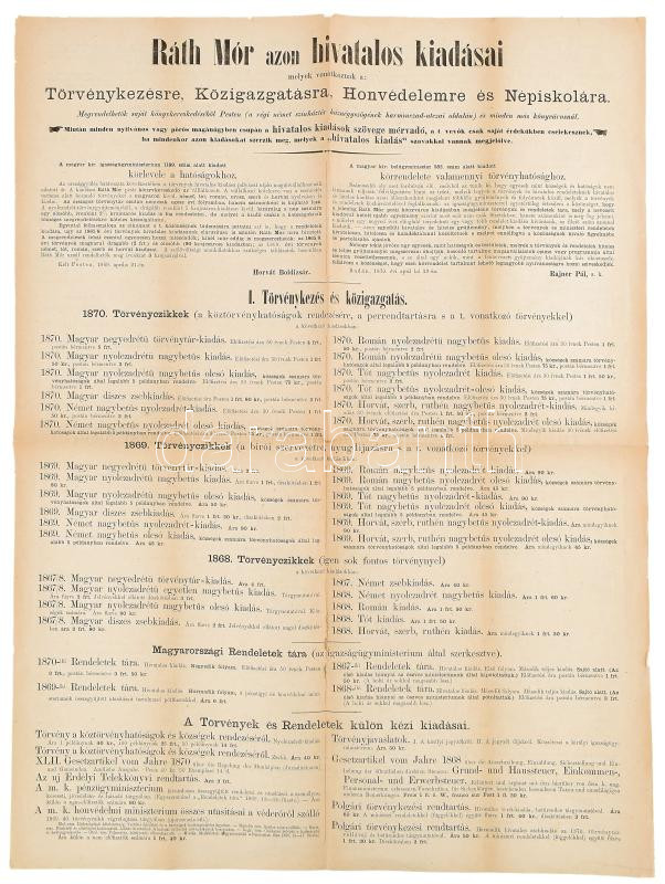 1869 Ráth Mór hivatalos kiadásai, hirdetmény, 62×47 cm https://www.darabanth.com/de/435-Fernauktion/435.0/Kunst-Dokumente-andere-Sammelgebiete/Drucksachen~2000003/1869-Rath-Mor-hivatalos-kiadasai-hirdetmeny-62C39747-cm~II2785656