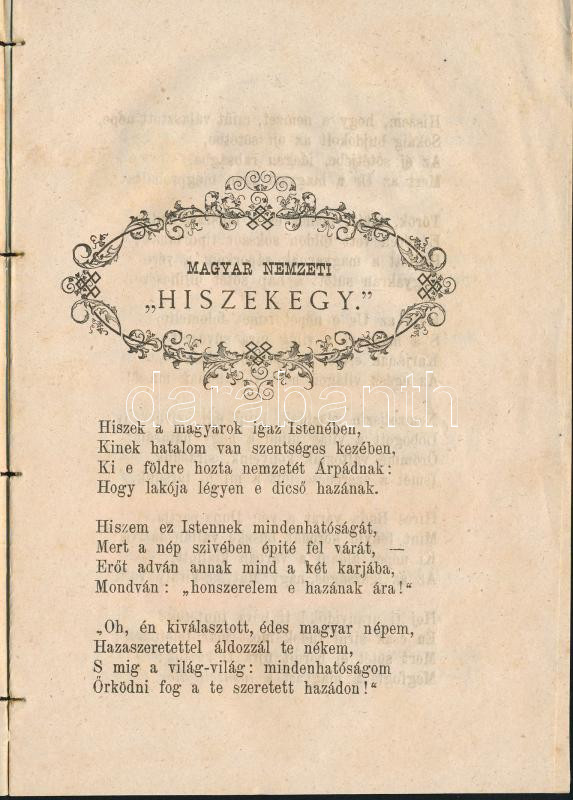 Beschreibung: 1872 Magyar Nemzeti "Hiszekegy". Pest-Bécs, Deutsch Testvérek-ny., 16 p.