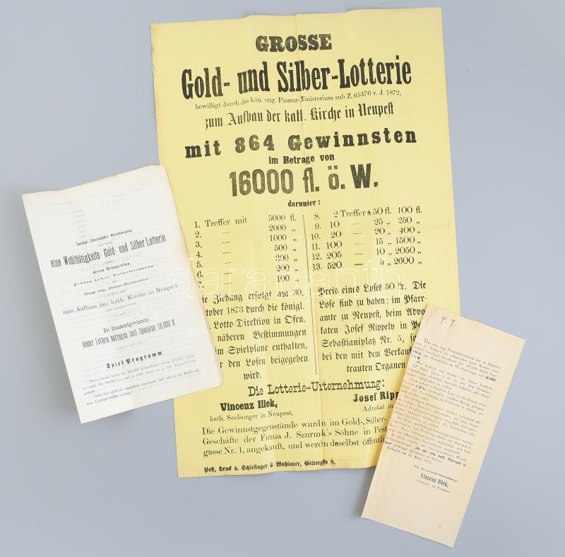 1877 Az újpesti katolikus templom javára rendezett lottó plakát hirdet... https://www.darabanth.com/de/435-Fernauktion/435.0/Kunst-Dokumente-andere-Sammelgebiete/Drucksachen~2000003/1877-Az-ujpesti-katolikus-templom-javara-rendezett-lotto-plakat-hirdetmenye-szabalyai-es-nC3~II2821899